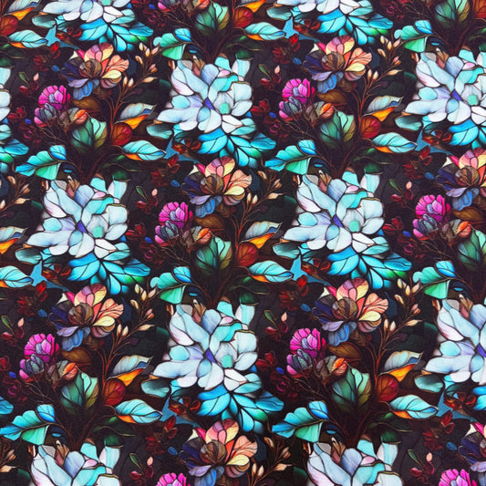 Stained Glass Floral on Canvas Fabric - Waterproof