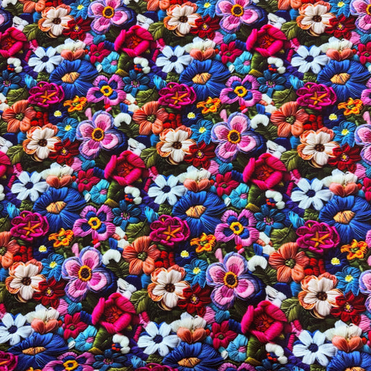 Embroidered Bright Flowers on Canvas Fabric - Waterproof