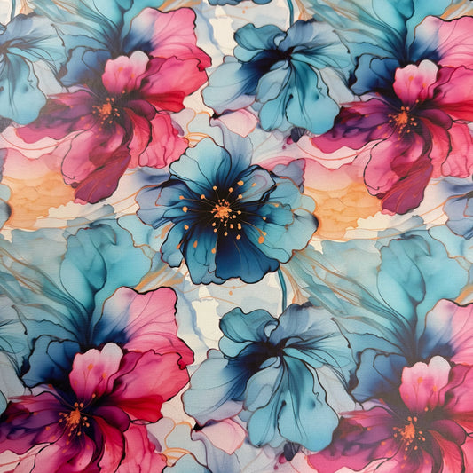 Magenta and Blue Flowers on Smooth Vinyl Fabric