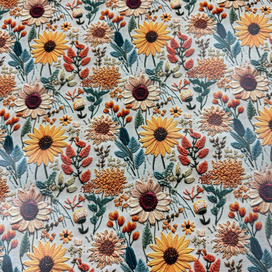 Embroidered Sunflowers on Smooth Vinyl Fabric