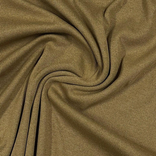 Camel Polyester/Lambswool Blend Rib Knit Fabric - 1x1