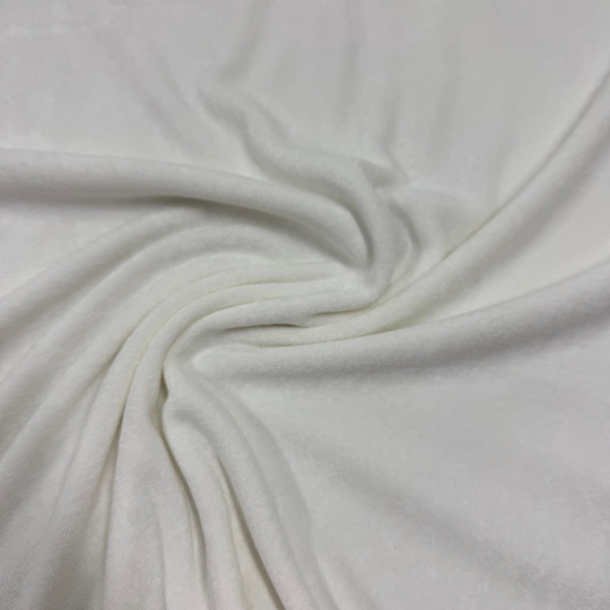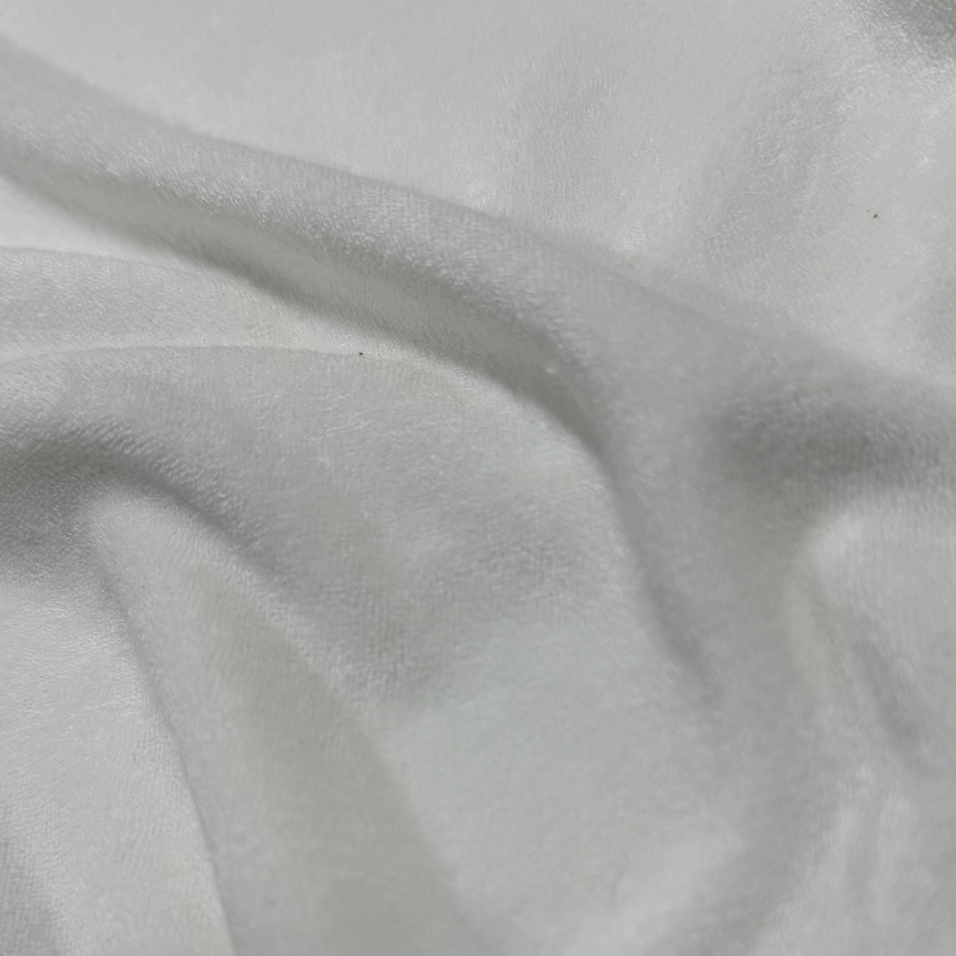 Our Bamboo Baby Loop Terry is made of 70% Bamboo Viscose, 27% Organic Cotton, and 3% Spandex. This fabric is 54” wide and weighs 300 GSM. It stretches 50% in the width and 20% in the length. The small loops are on one side and the back is flat. With its short loop, soft texture and thirsty absorbency, it is perfect for cloth fitted diapers, washcloths, wipes, baby towels, spa towels, bath robes, pillowcases, loungewear and many other items for the home and personal care. The tiny weave and loops absorb water and are gentle to the skin. Our bamboo baby loop terry dyes well.