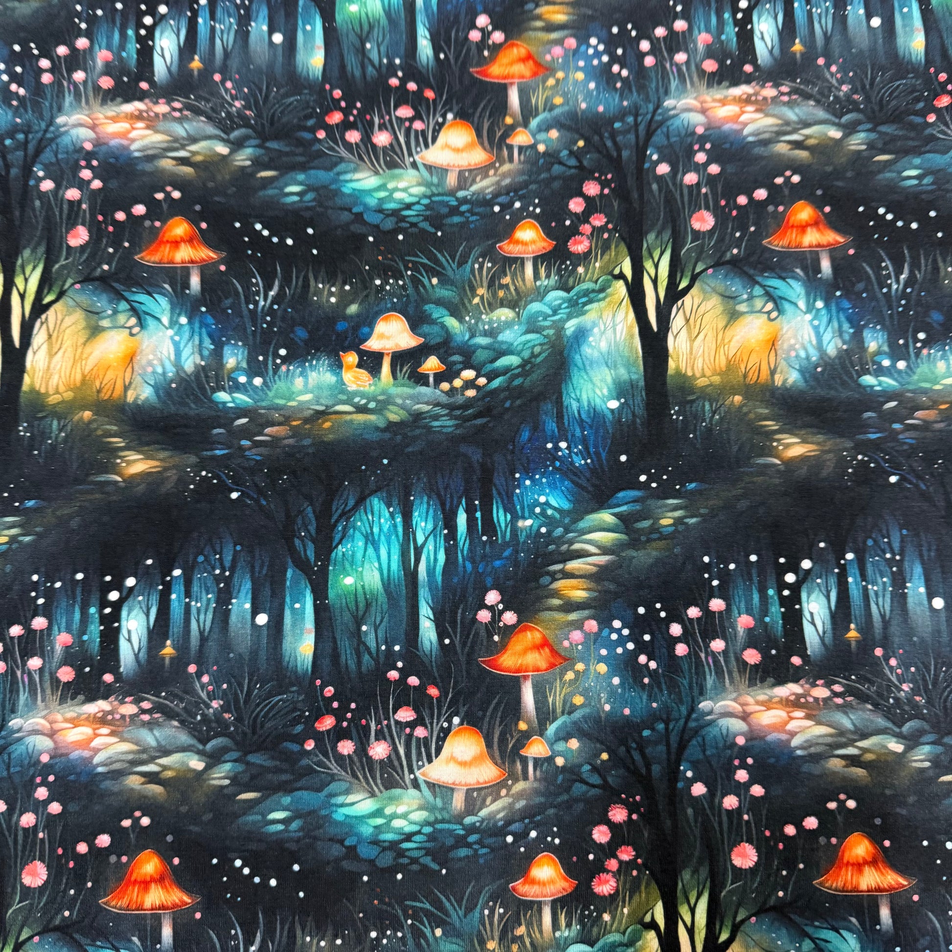 Blue Magic Forest on Bamboo/Spandex Jersey Fabric
