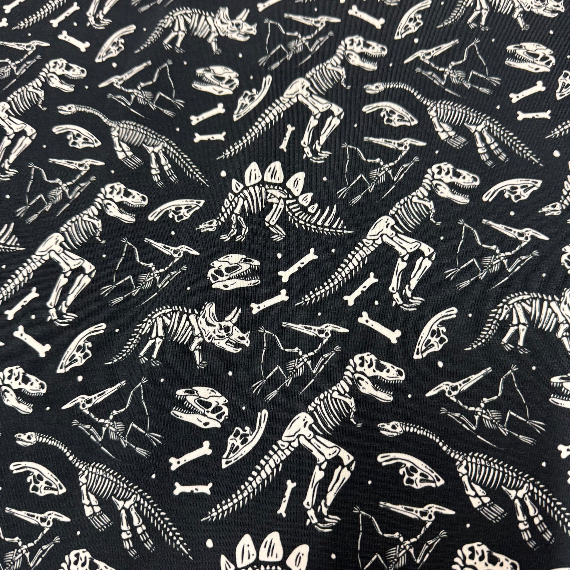 Dino Skeletons on Bamboo Stretch French Terry Fabric