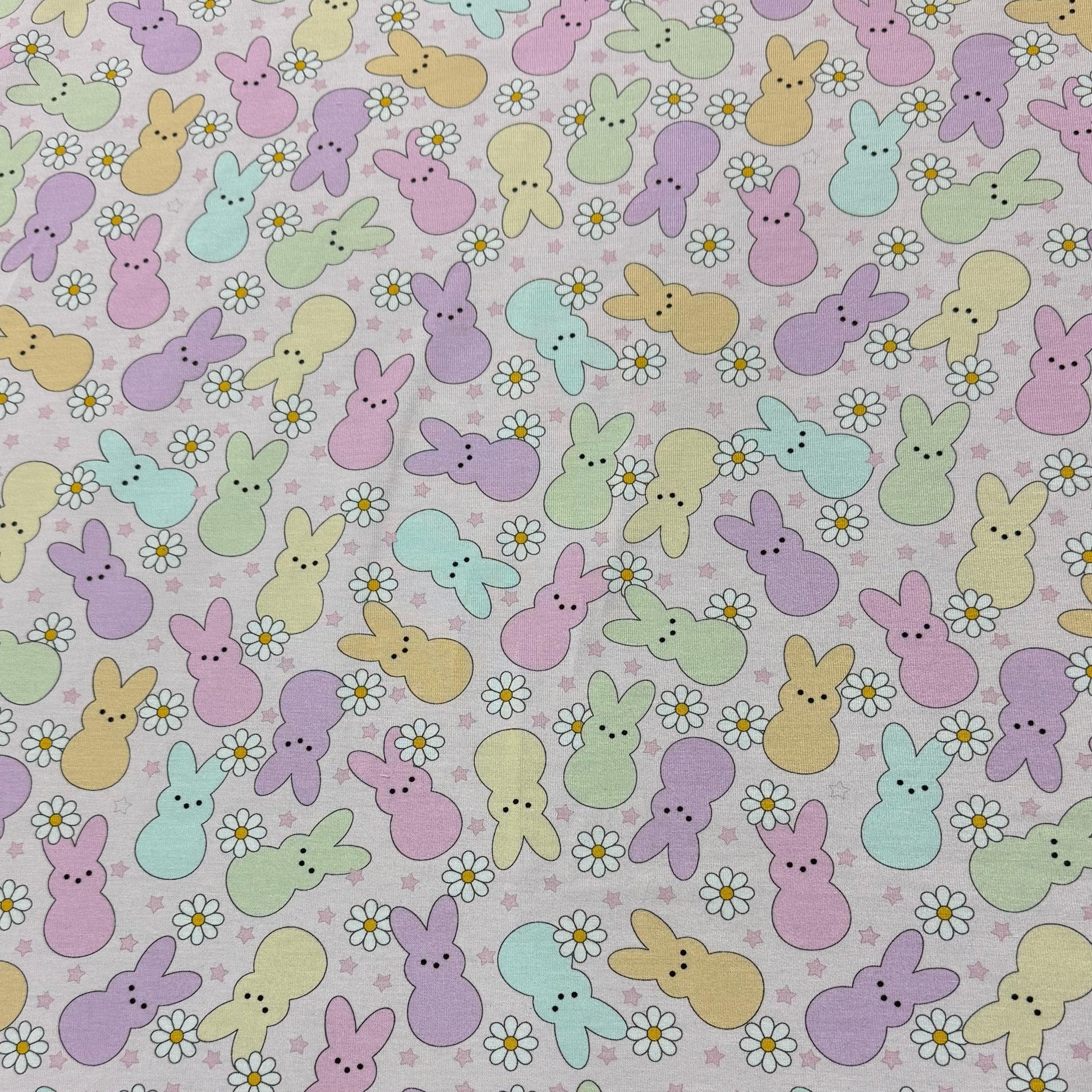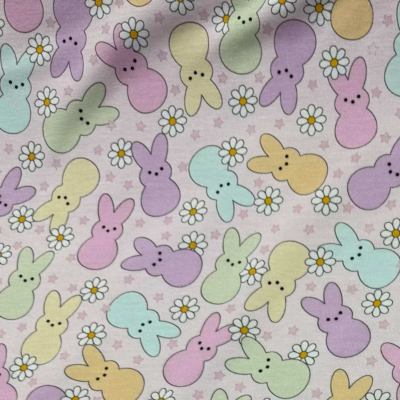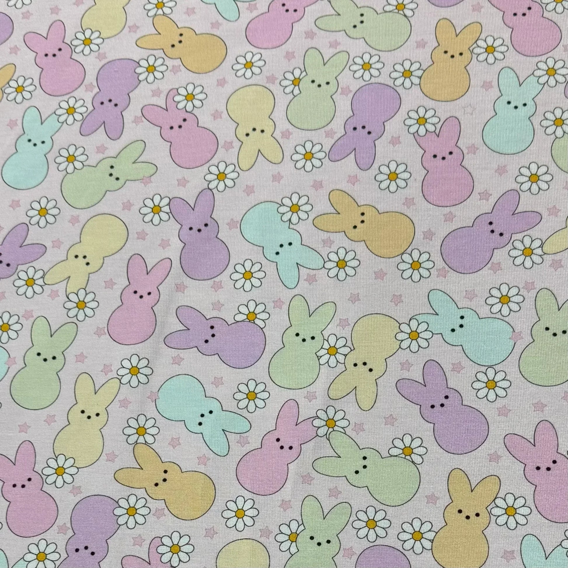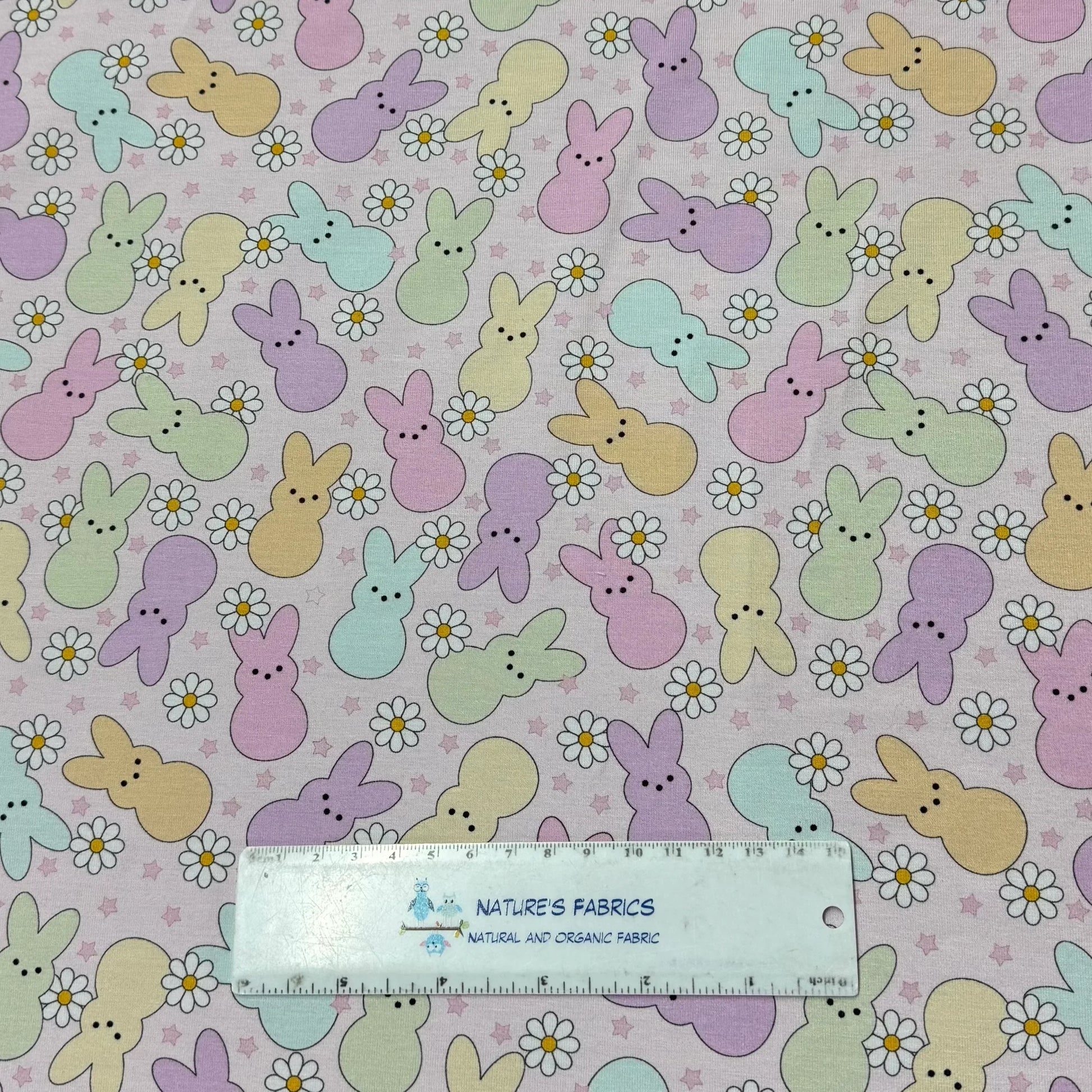 Easter Bunnies on Bamboo/Spandex Jersey Fabric