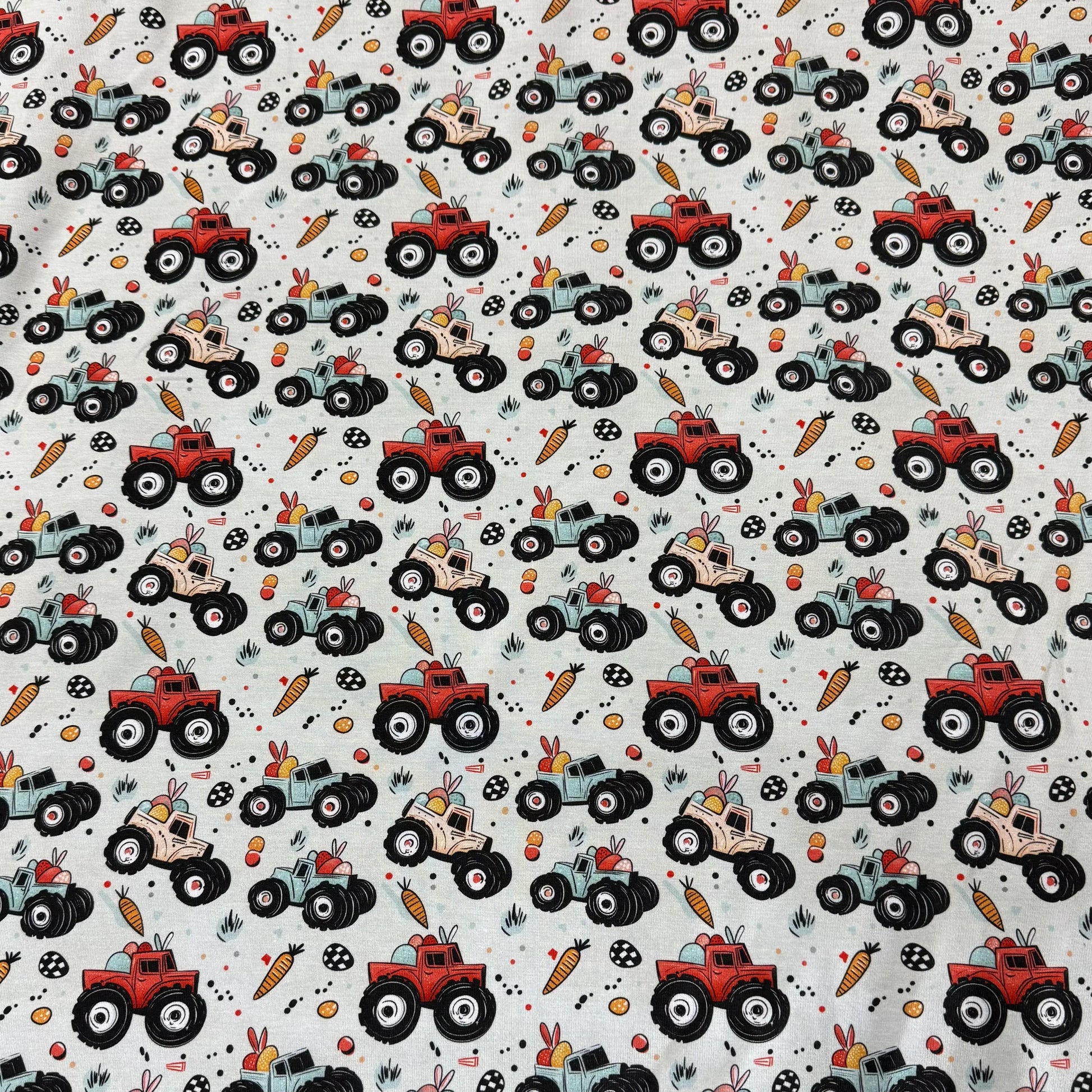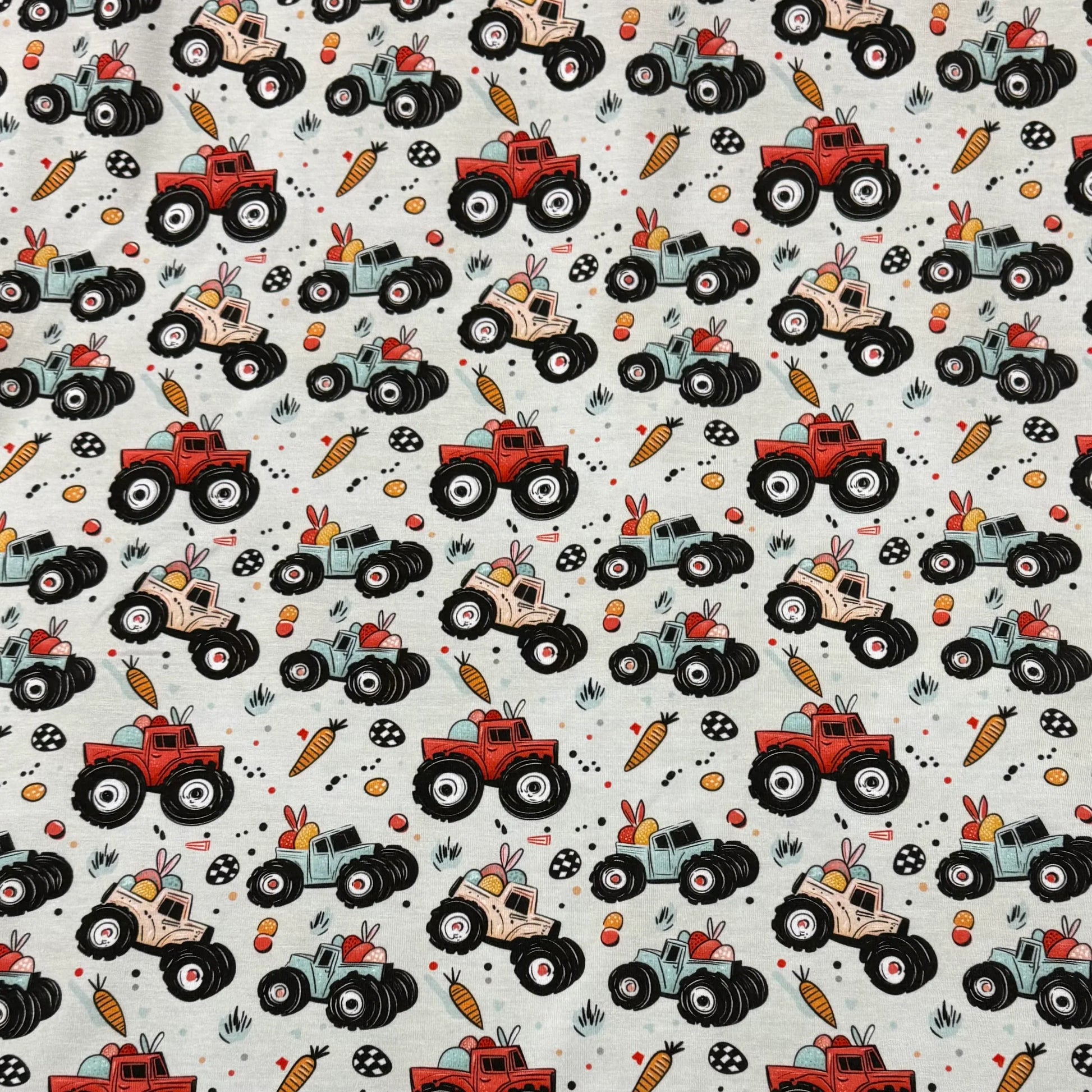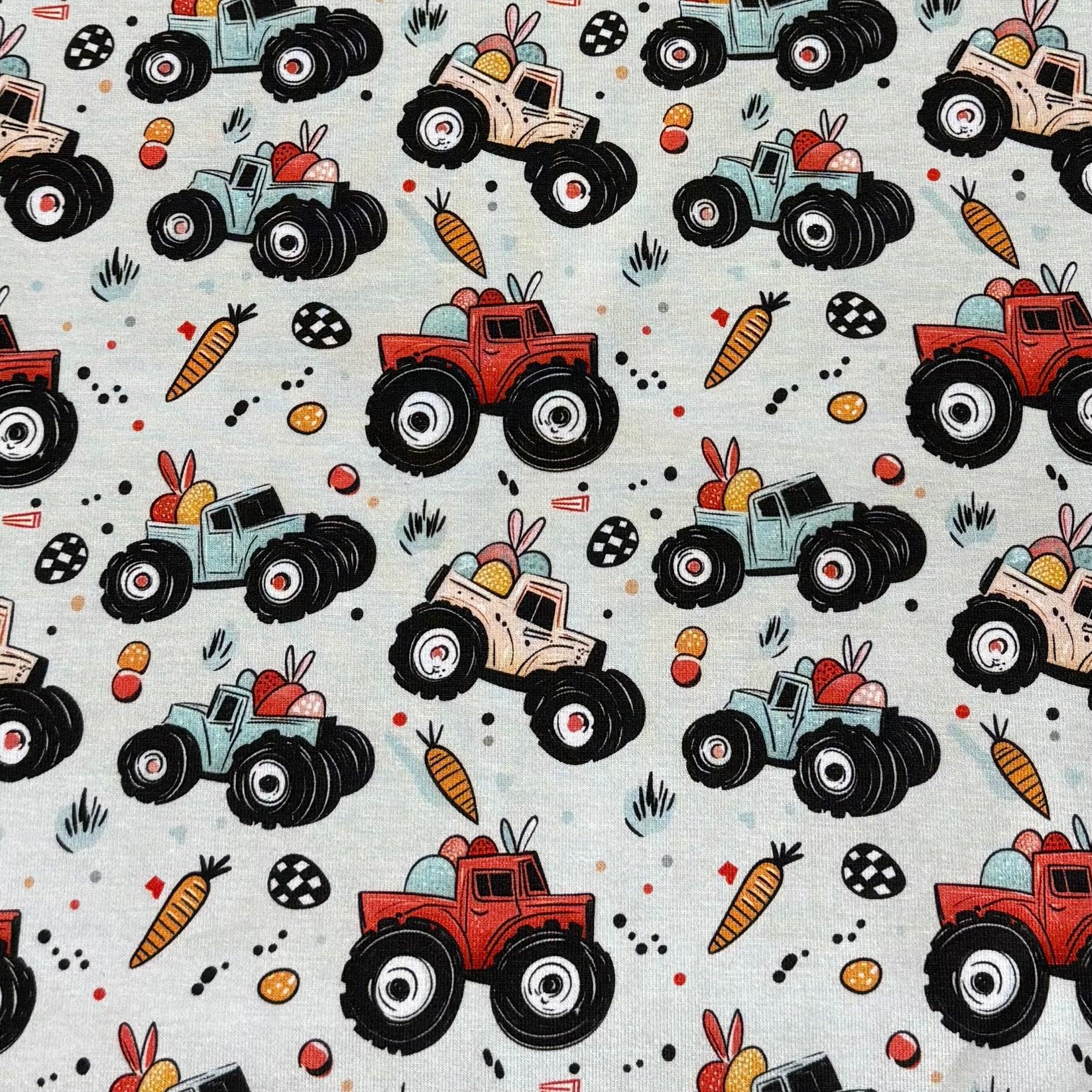 Easter Trucks on Bamboo/Spandex Jersey Fabric