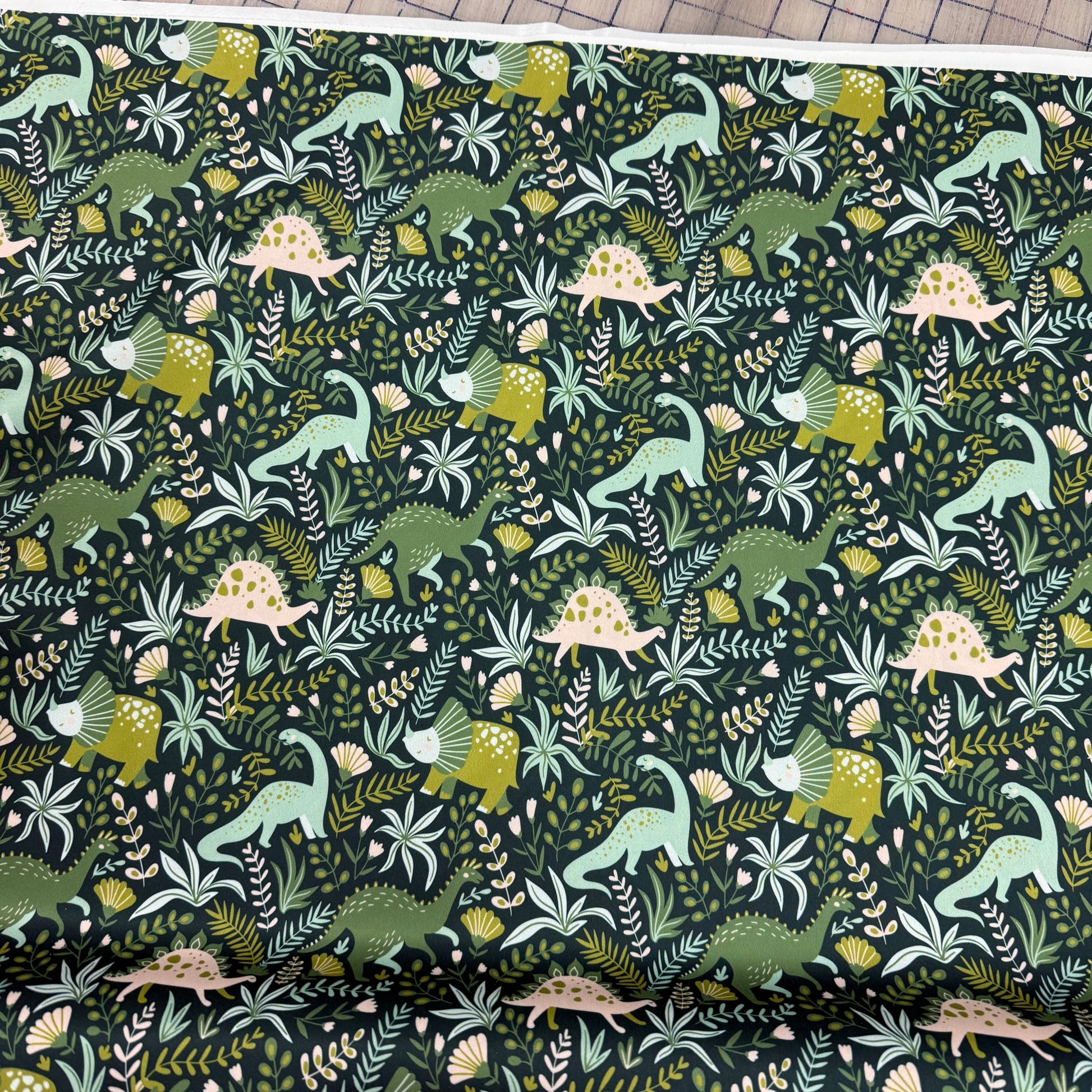 Green Dino on Green 1 mil PUL Fabric - Made in the USA