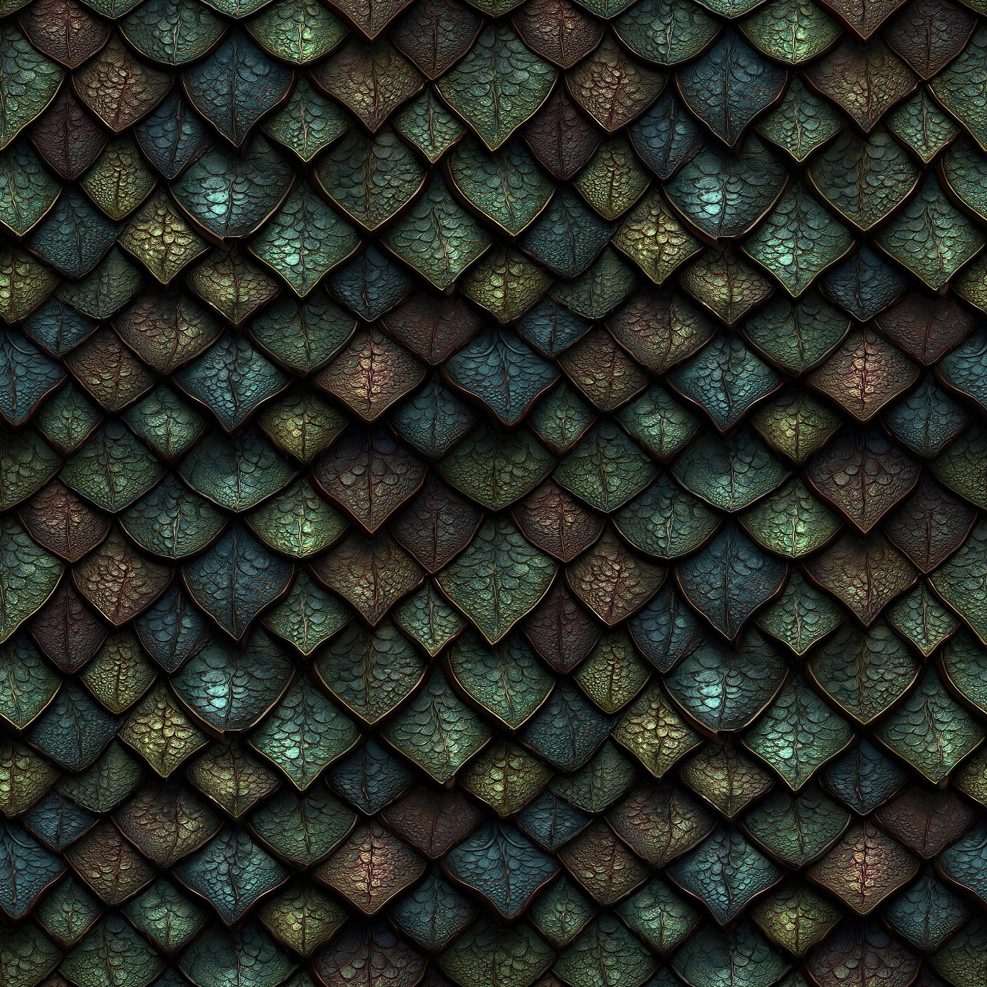 Green Metal Scales on Bamboo Stretch French Terry Fabric