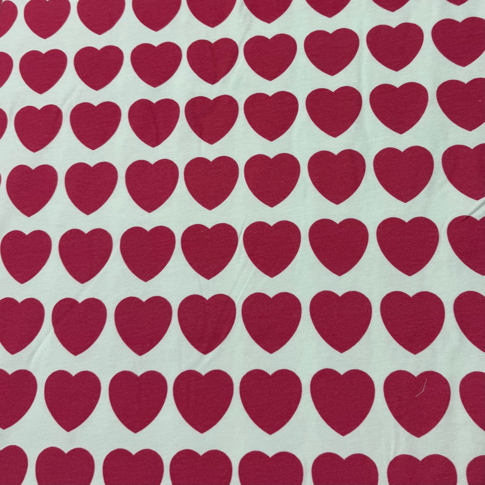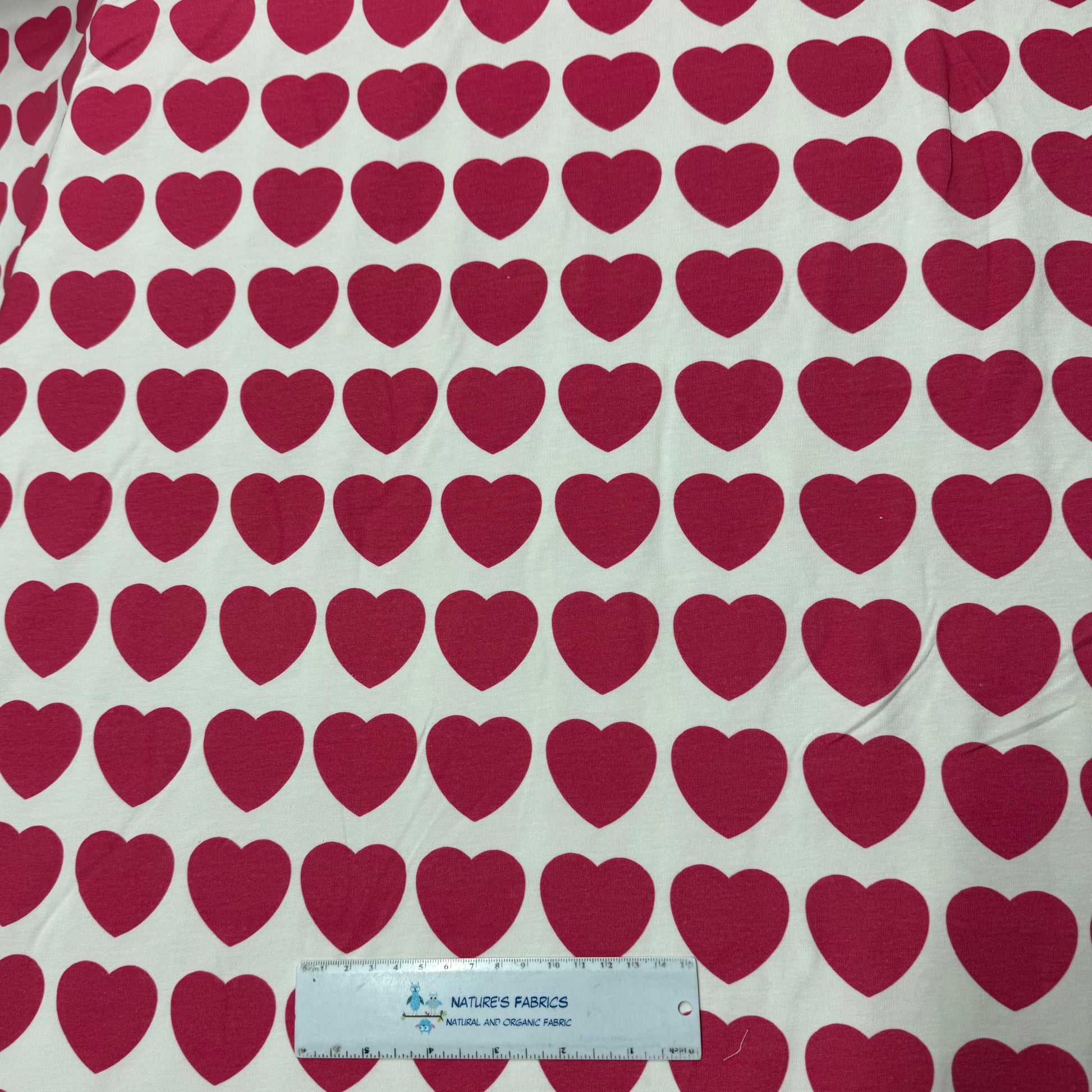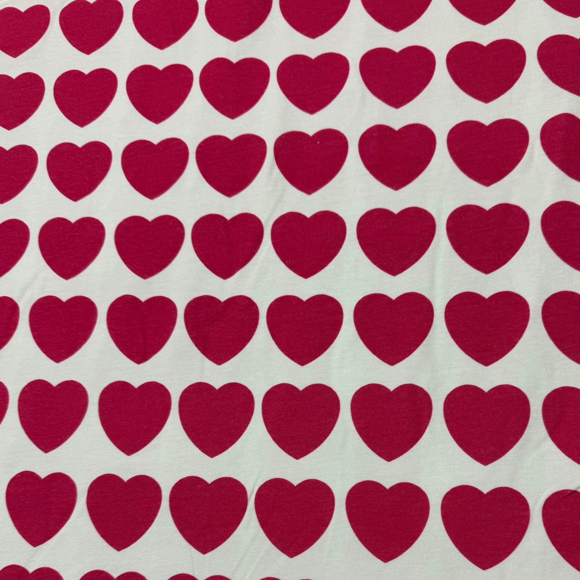 Hot Pink Hearts on Off White Bamboo/Spandex Jersey Fabric- Printed in the USA