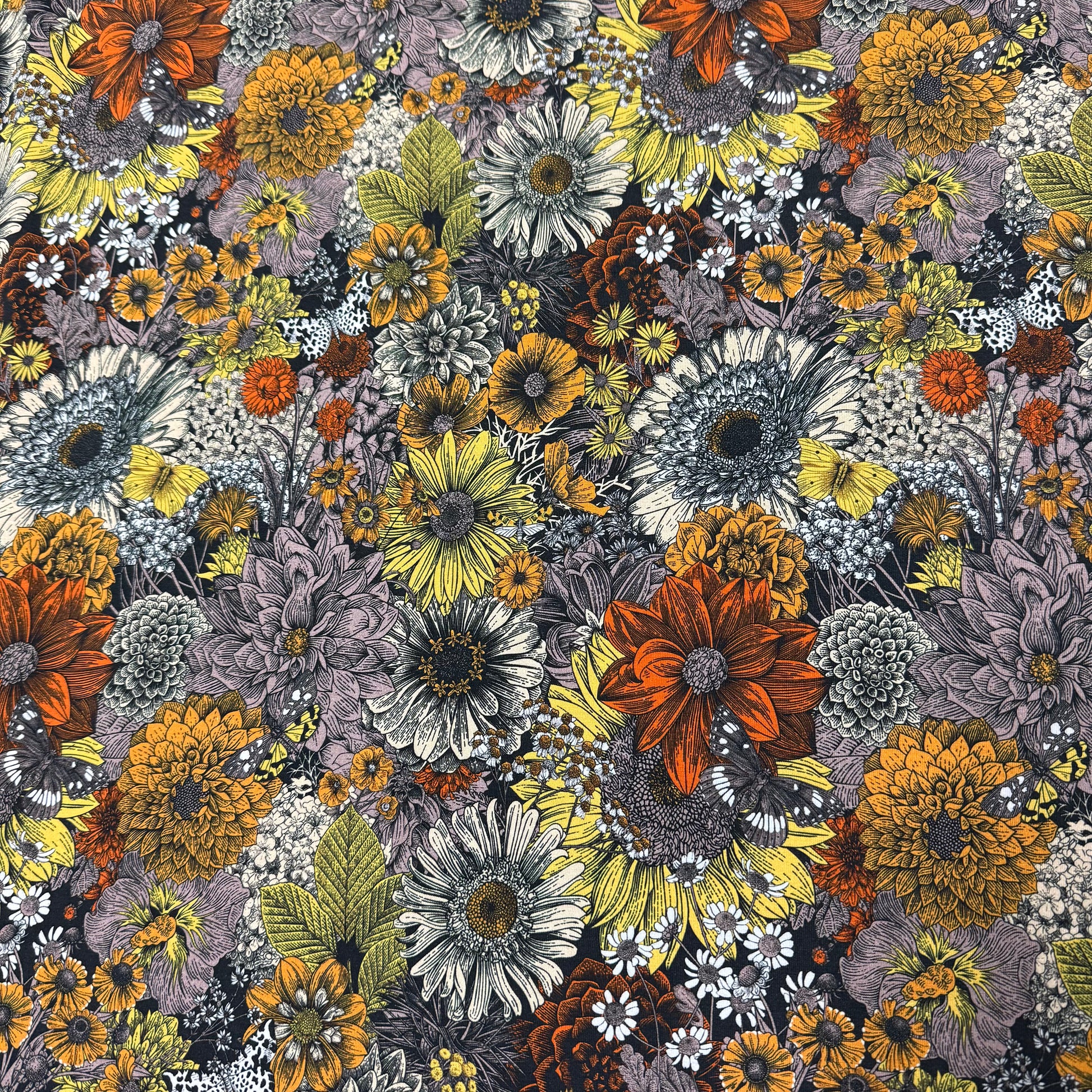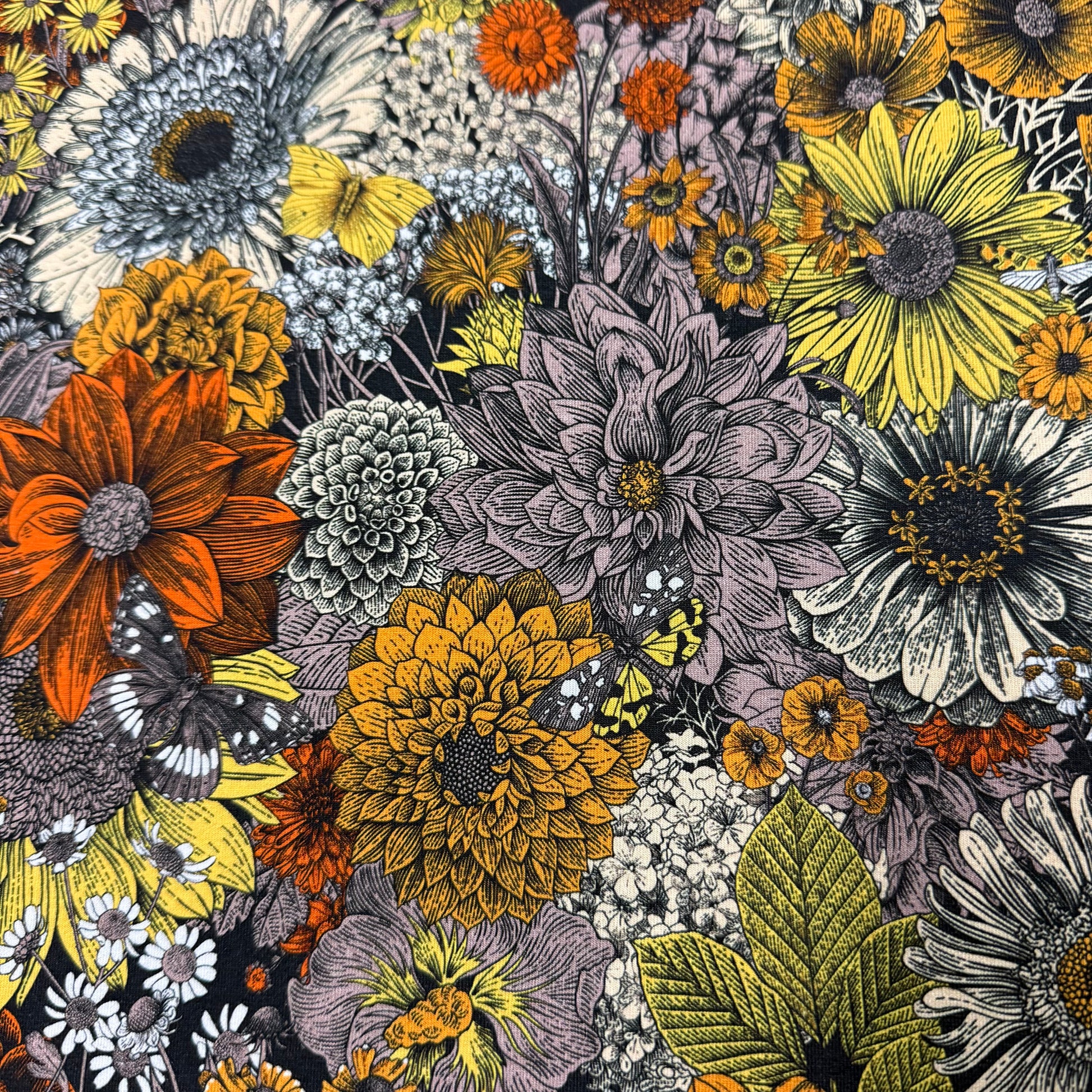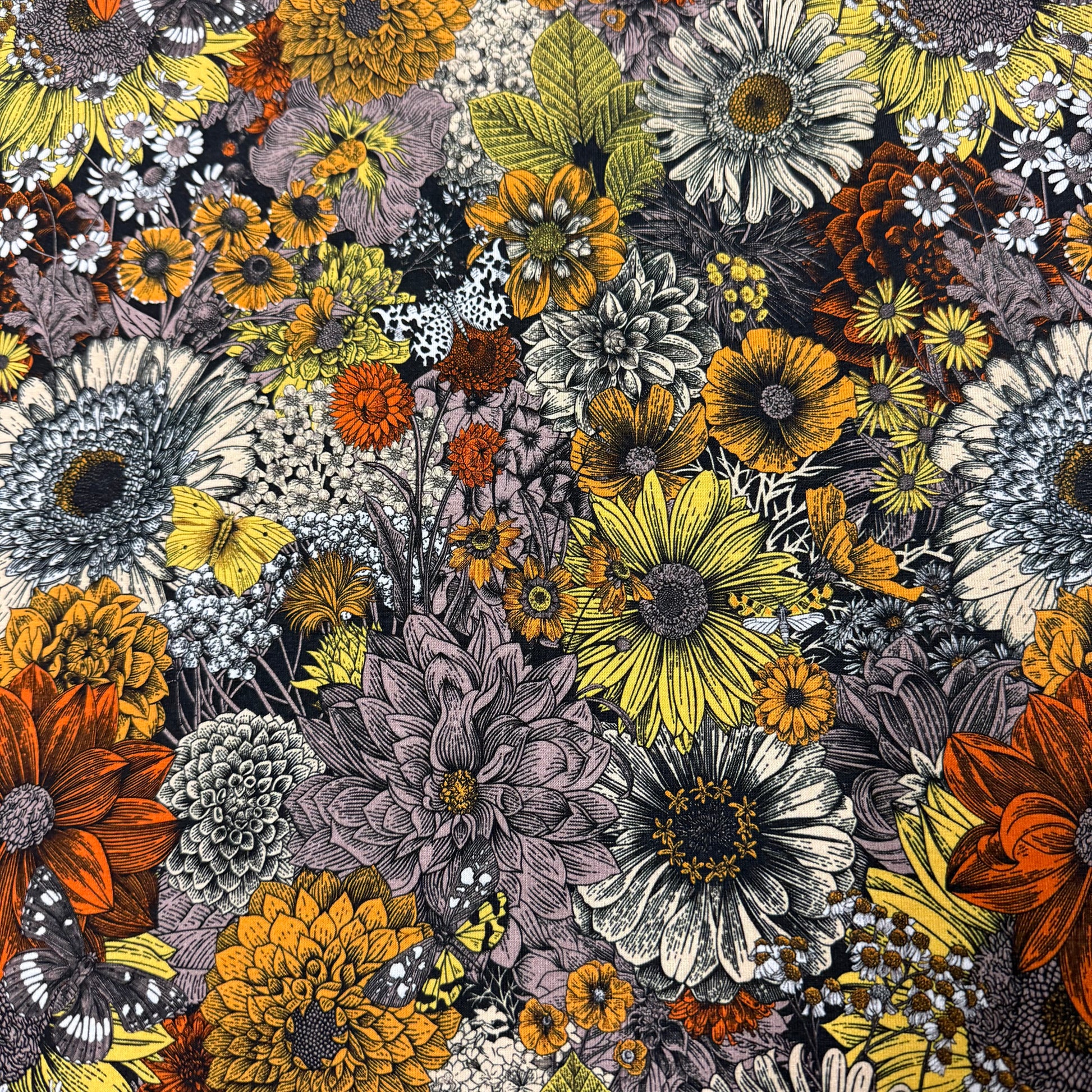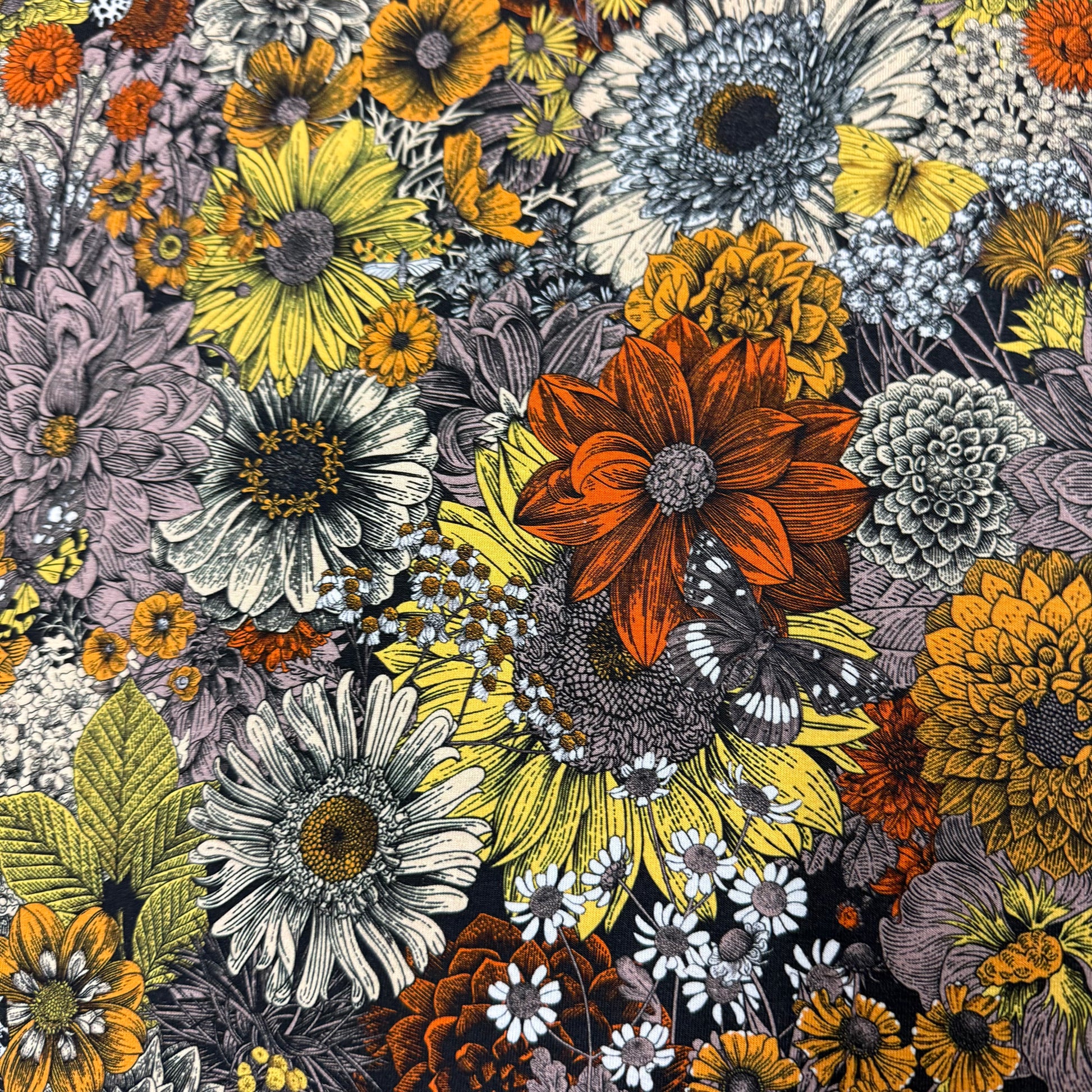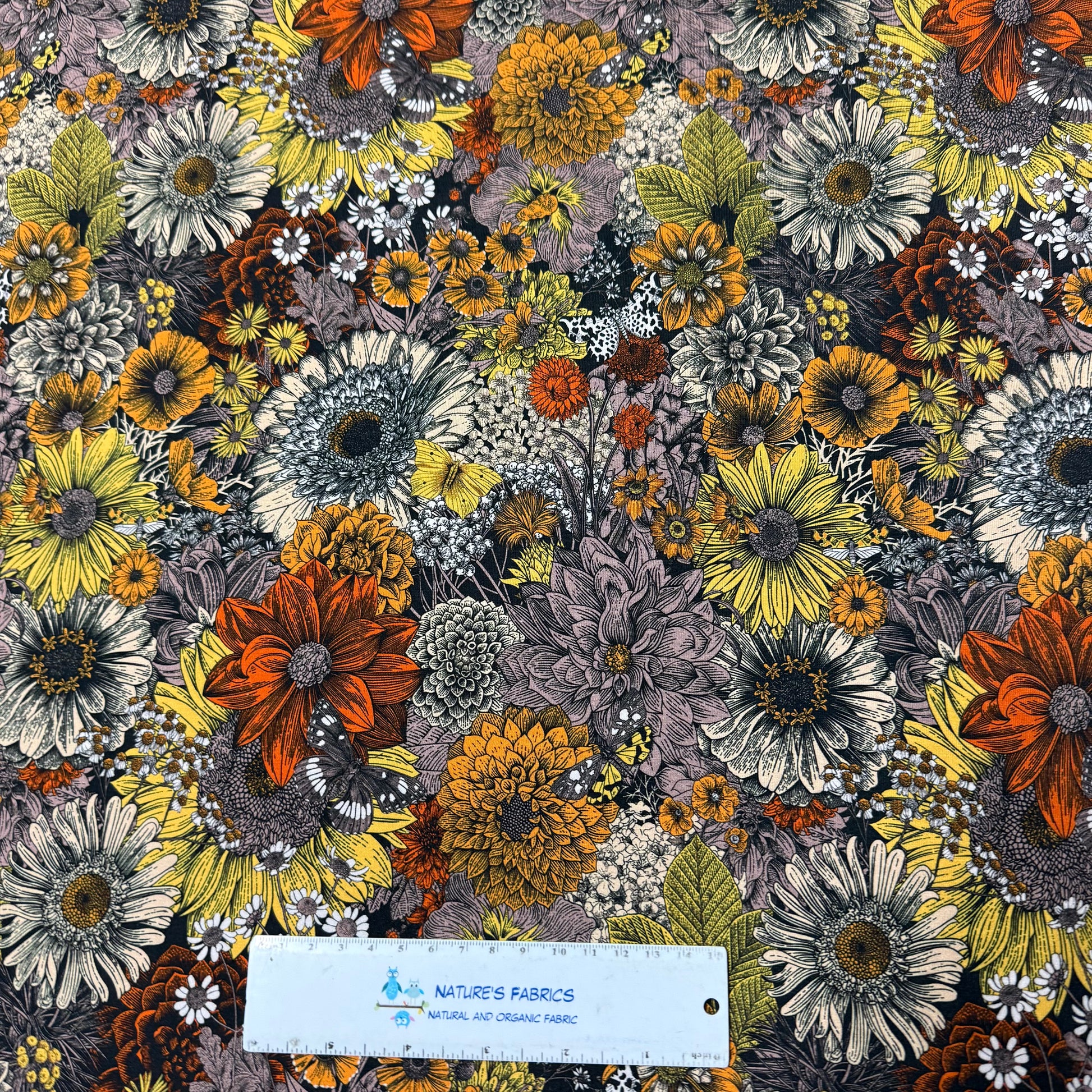 Pen and Ink Fall Flowers on Bamboo/Spandex Jersey Fabric