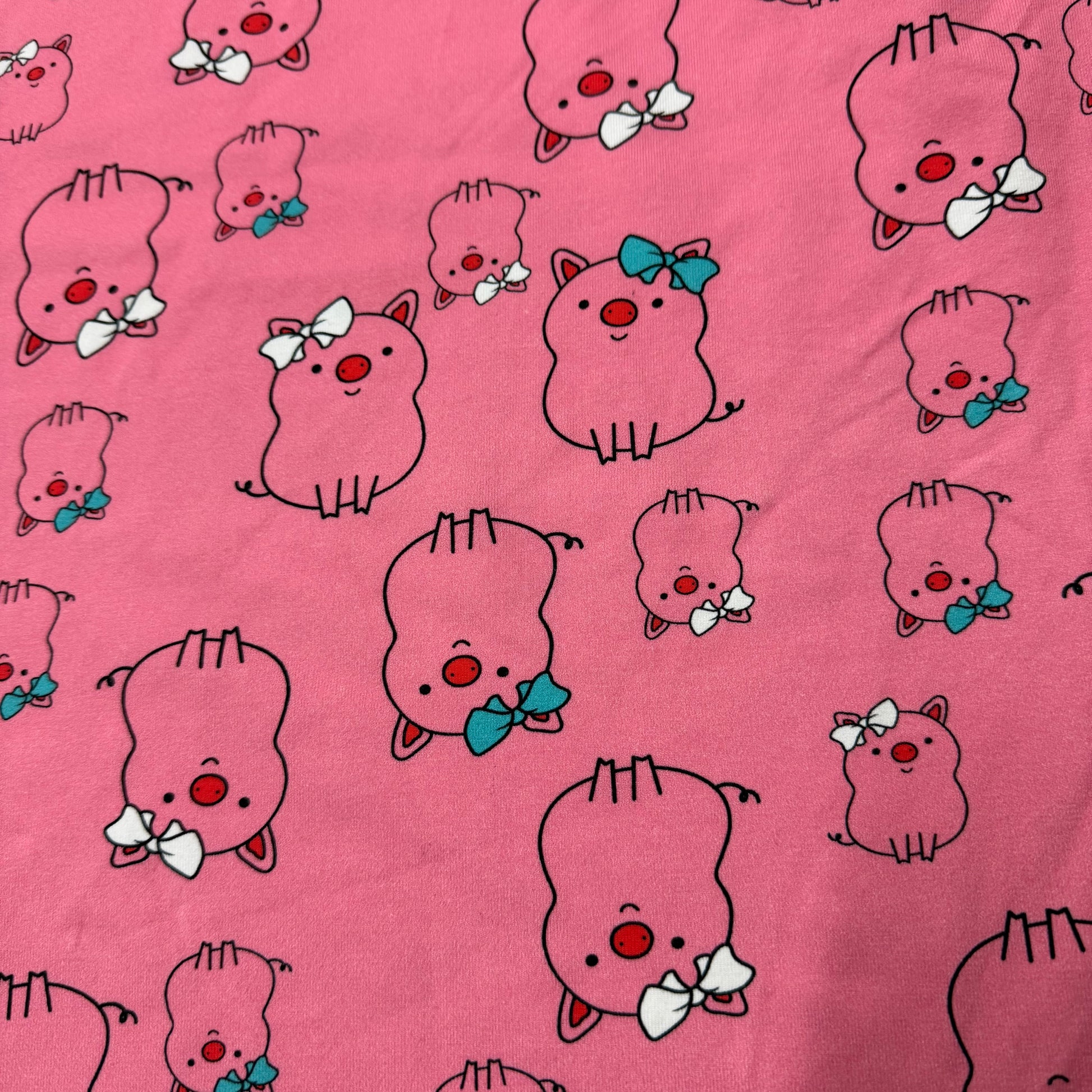 Pink Pigs on Pink Cotton/Spandex Jersey Fabric