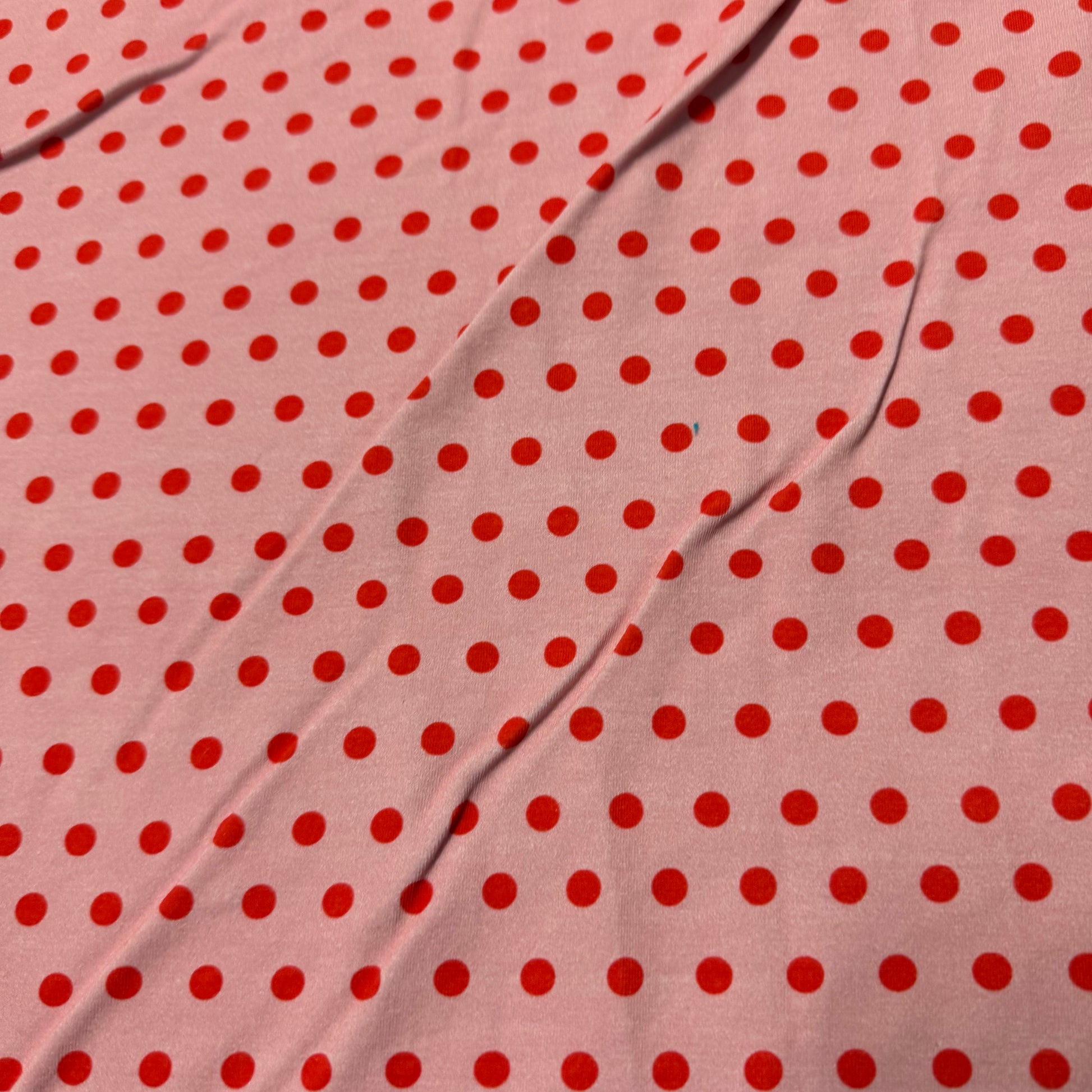 Pink Polka Dots on Pink Cotton/Spandex Jersey Fabric