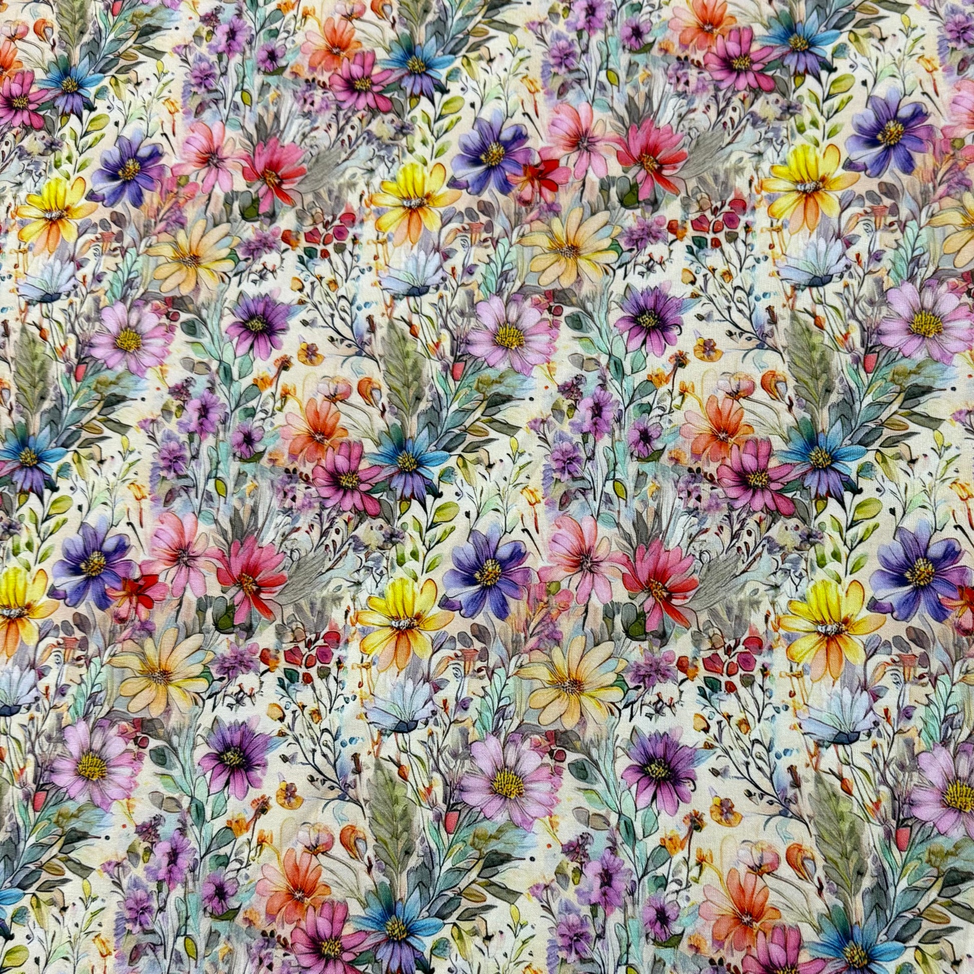 Rainbow Wildflowers on Bamboo Stretch French Terry Fabric