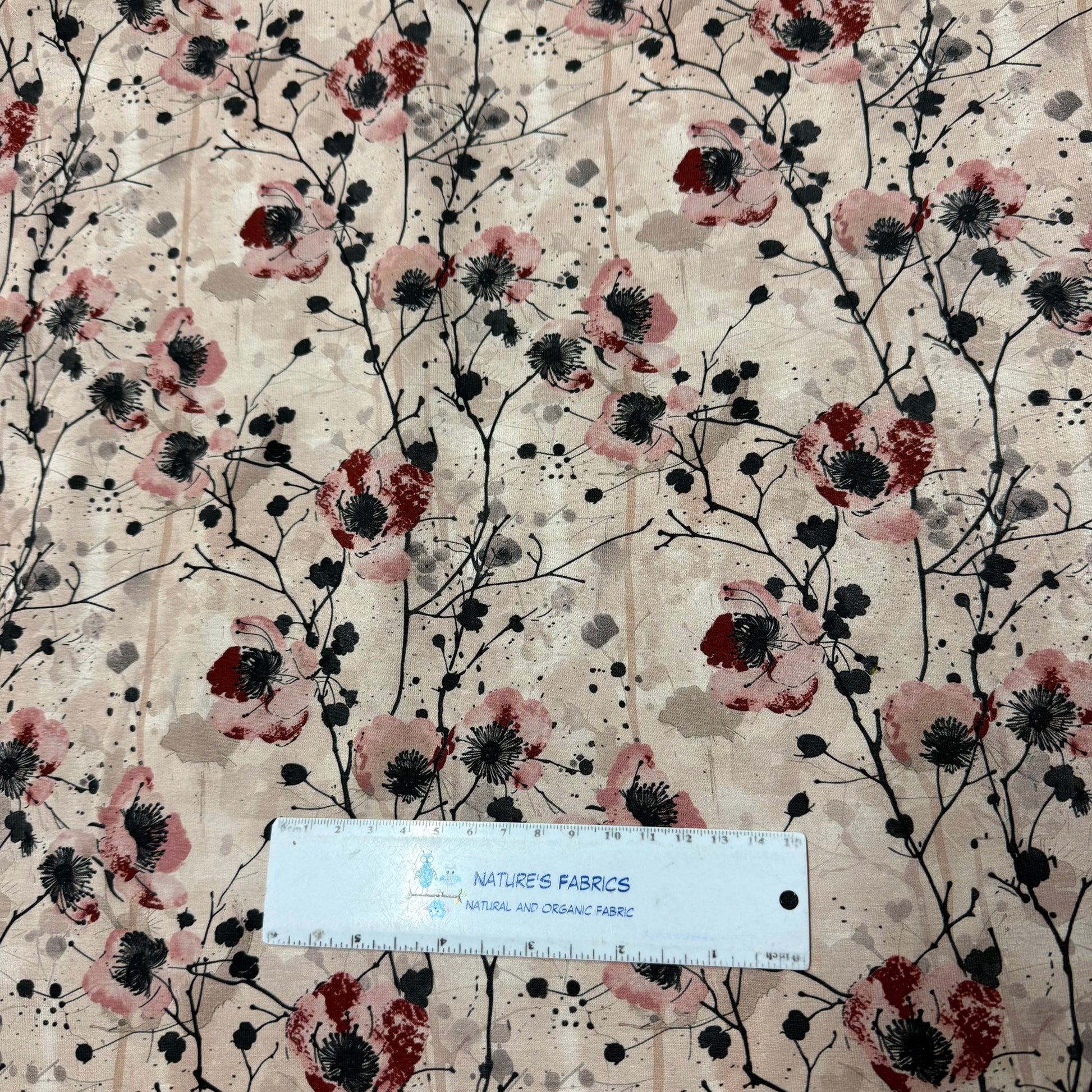 Red and Tan Blossoms on Bamboo/Spandex Jersey Fabric