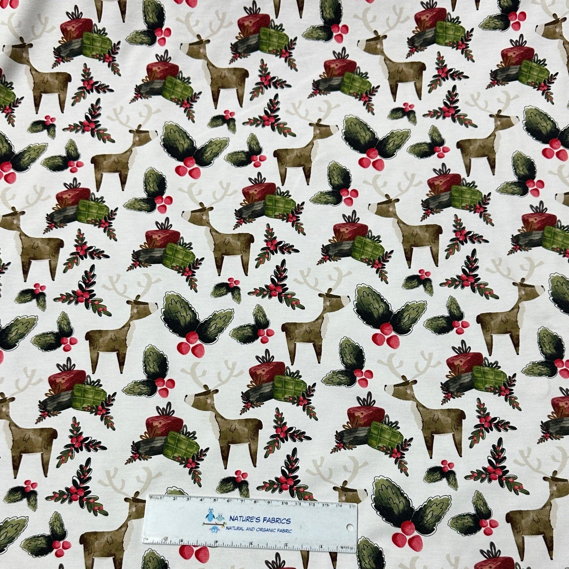 Reindeer Christmas on White Bamboo/Spandex Jersey Fabric