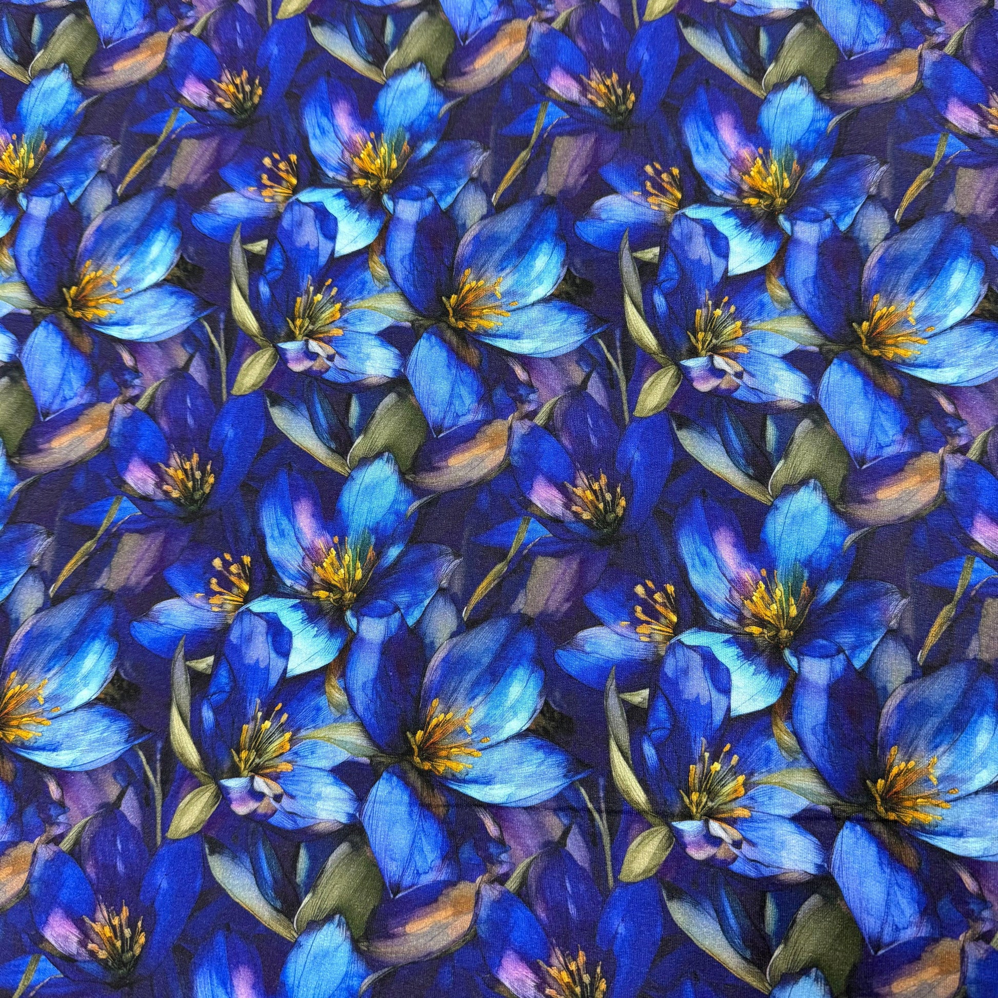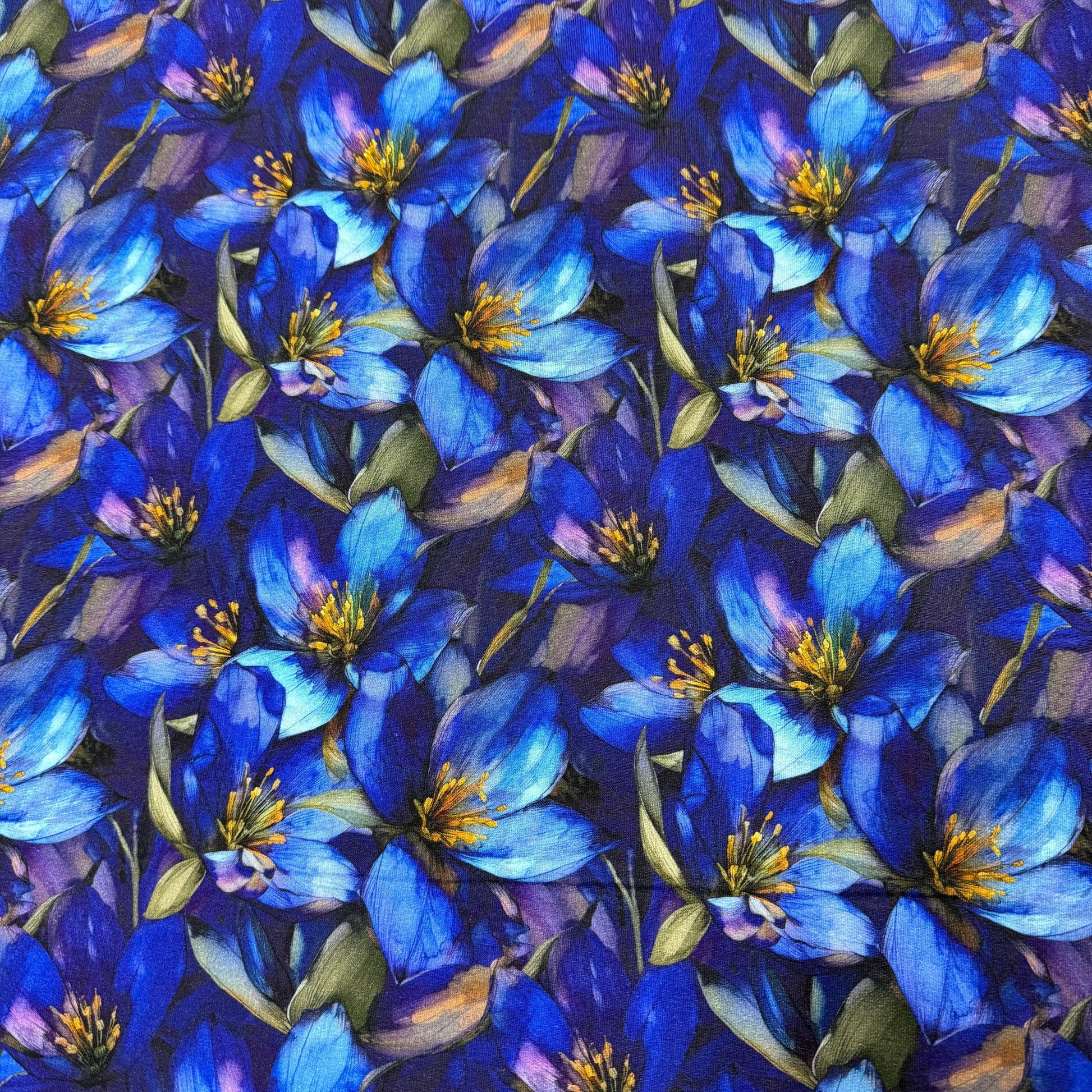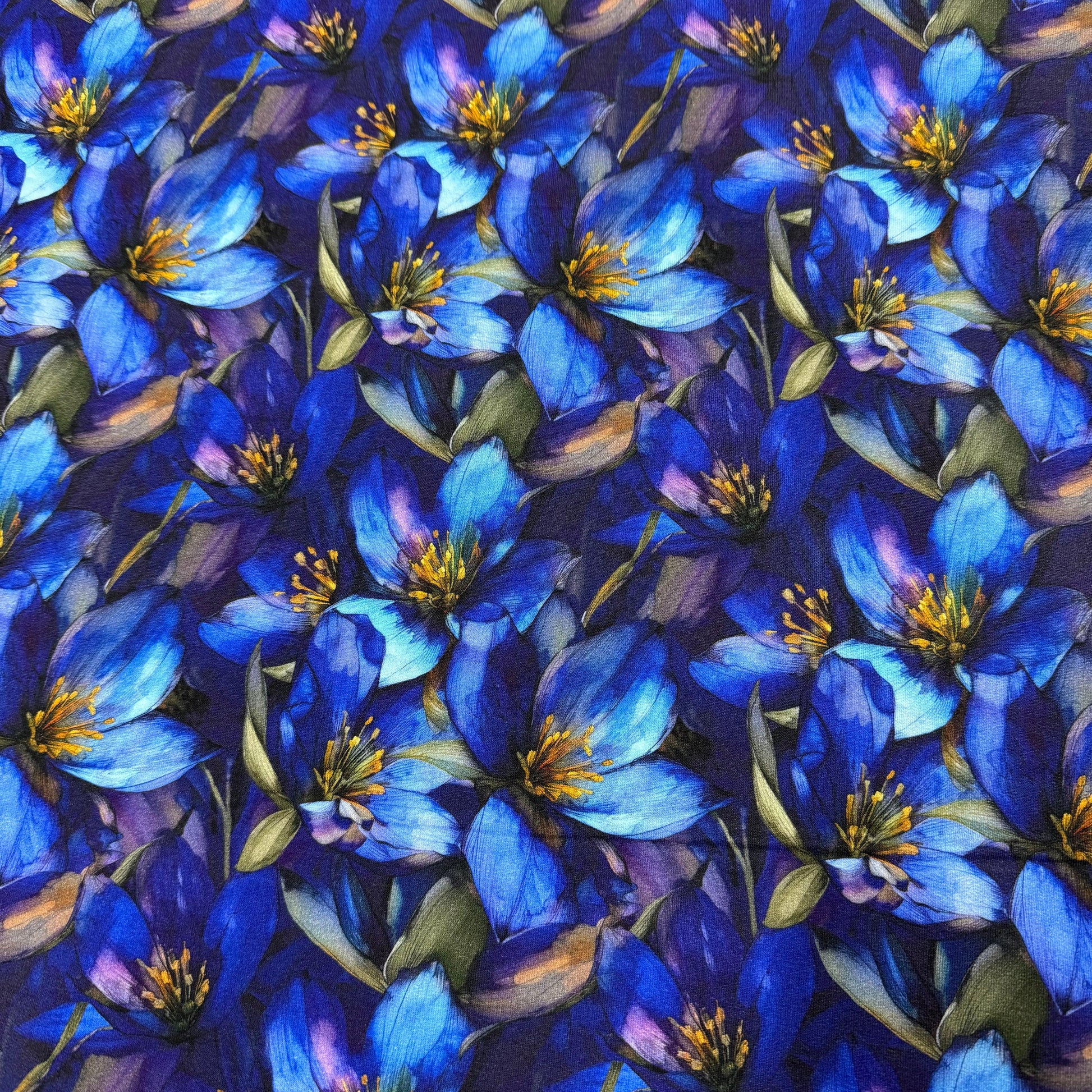 Sapphire Gentians on Bamboo/Spandex Jersey Fabrics