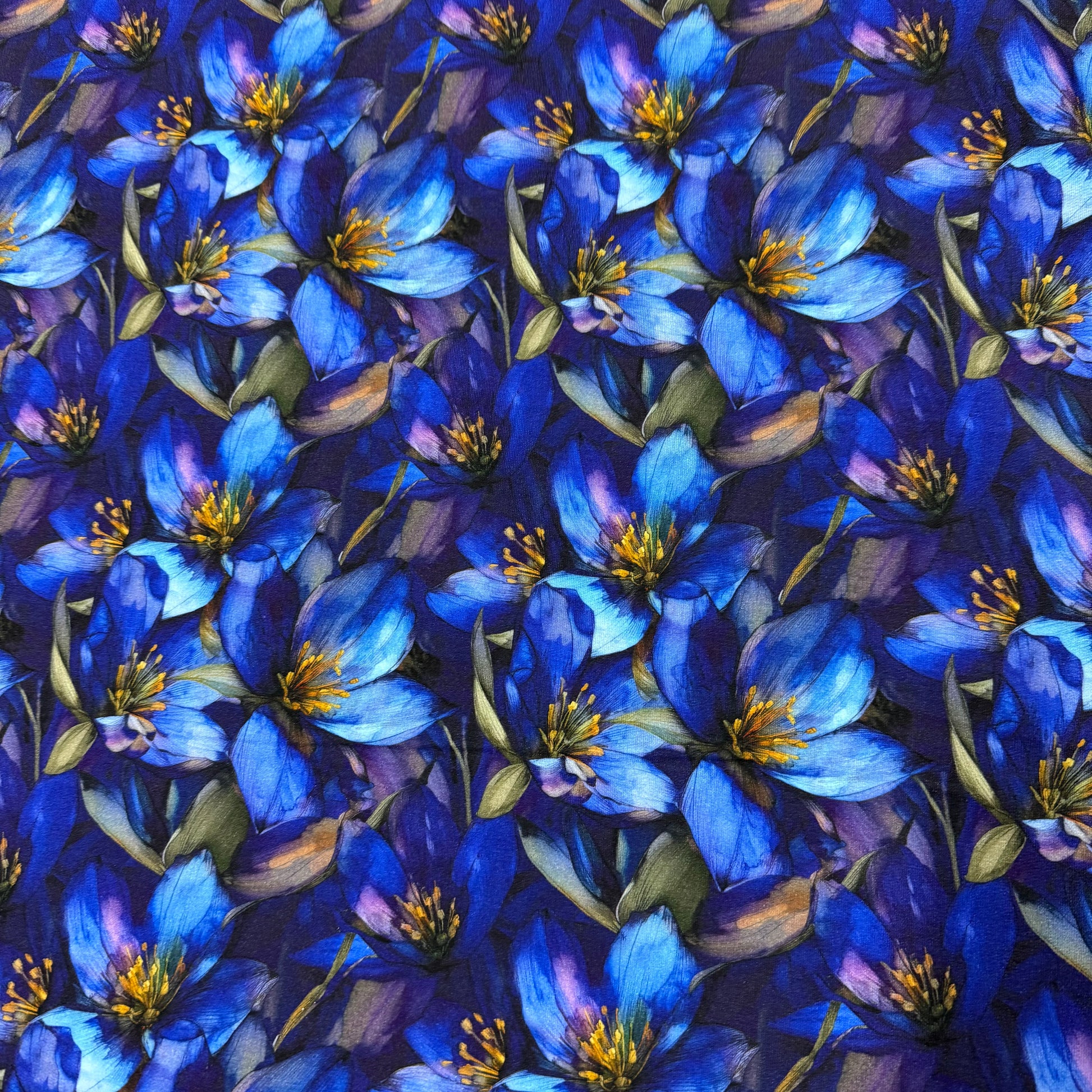 Sapphire Gentians on Organic Cotton Stretch French Terry Fabric