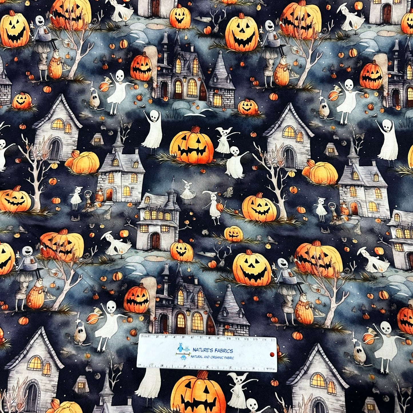 Halloween Town on Bamboo/Spandex Jersey Fabric