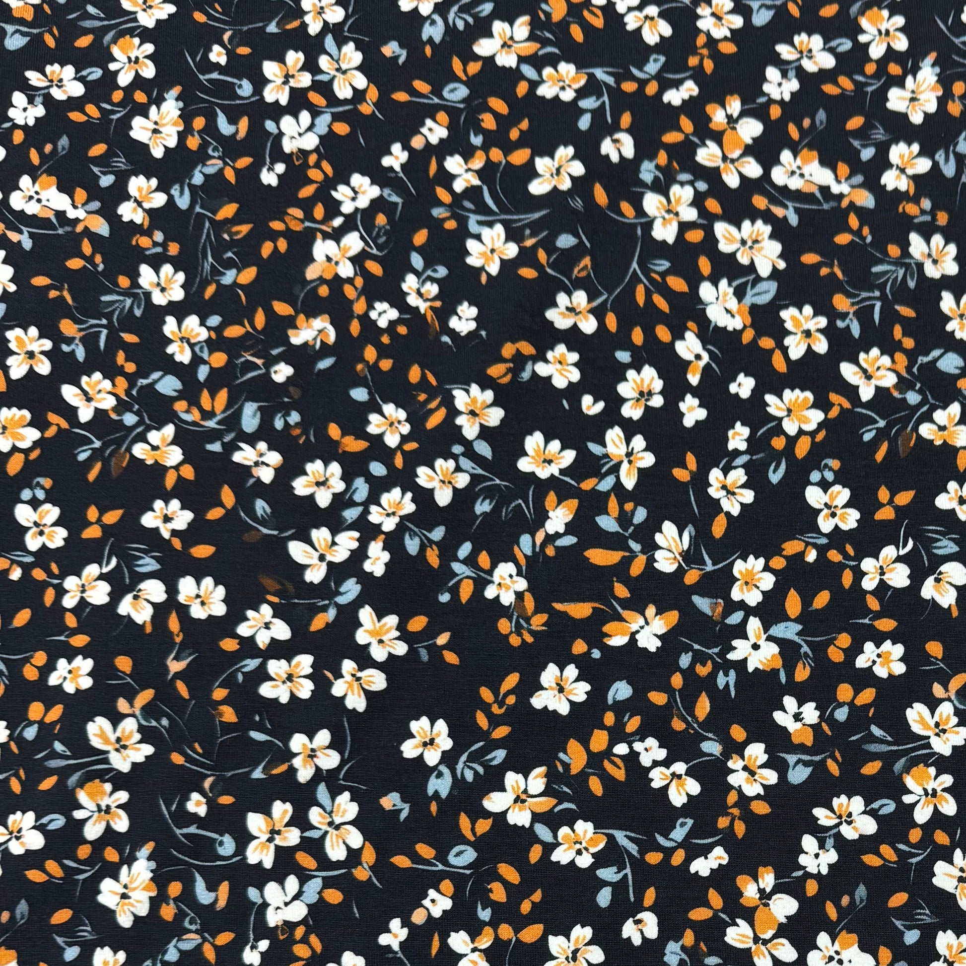 Vintage Floral on Navy Organic Cotton Stretch French Terry Fabrics